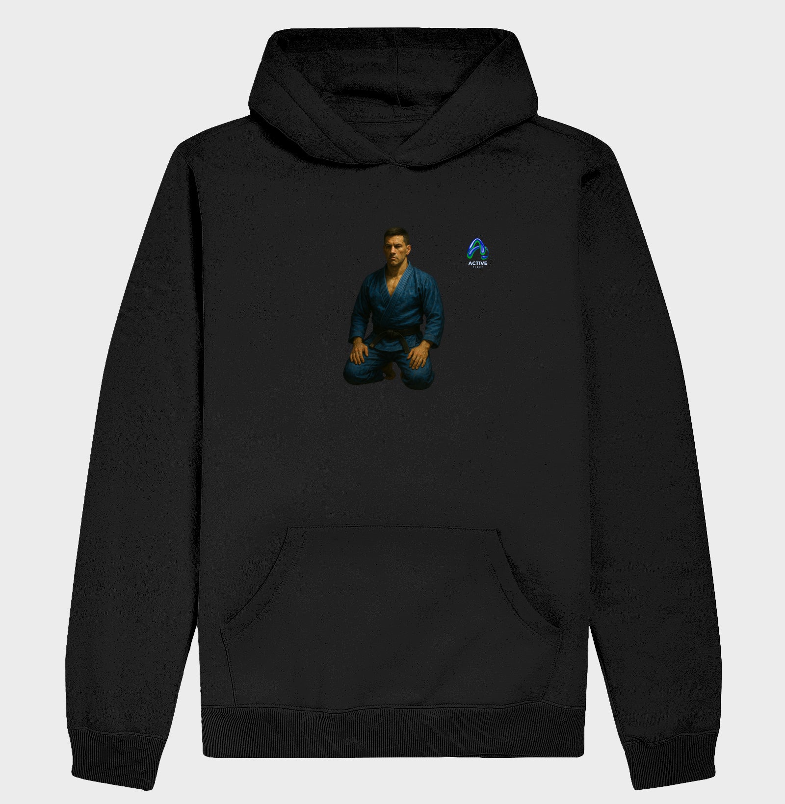 Com a imponente estampa de um lutador de Jiu-Jitsu de joelhos, este moletom com touca carrega a essência da disciplina, da humildade e da força interior. Ideal para quem honra a luta dentro e fora do tatame, com conforto absoluto, caimento poderoso e presença marcante.